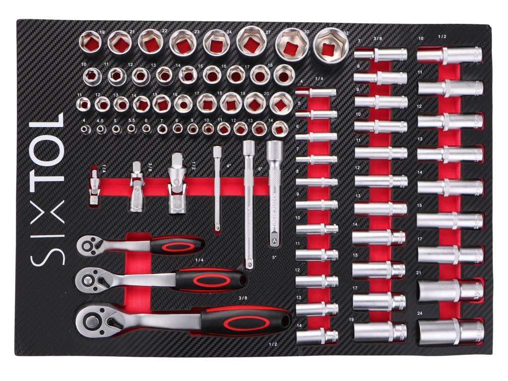 1. zásuvka – 80× hlavice, ráčny a příslušenství