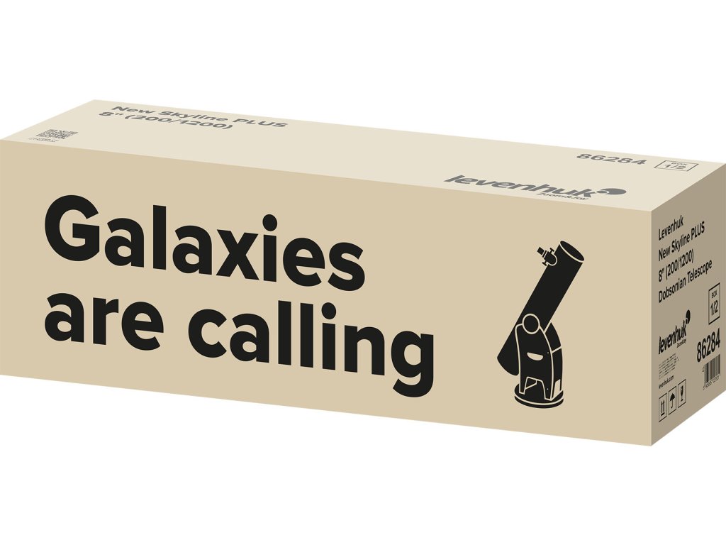 Hvězdářský dalekohled je namontován na robustní, ručně ovládané Dobsonově montáži z vysoce kvalitního dřeva. Pro optimální výkon se doporučuje používat hvězdářský dalekohled v teplotním rozmezí od –5 °C do +35 °C. Levenhuk New Skyline PLUS 8" se dodává se základním příslušenstvím: dvěma okuláry Plössl (10 mm a 25 mm, 1,25") a hledáčkem s červeným bodem.