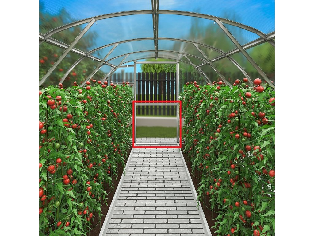 Dodatečné zadní dveře pro skleník LANITPLAST GLADUS. Konstrukce dveří je vyrobená z žárově pozinkovaných ocelových profilů síly 1 mm a šířky 56 mm. Jde o jednu z nejkvalitnějších antikorozních úprav. Dveře doporučujeme zakoupit současně s novým skleníkem, tzn. nákup si pečlivě rozmyslete předem, jestli nutně potřebujete průchozí skleník nebo ne, protože jen při stavně nového skleníku je zajištěn správný přesah polykarbonátu přes hranu dveří. Při dodatečné montáži do už hotového skleníku (= do již oříznutých desek na zadní straně skleníku) může docházet k mírným netěsnostem mezi křídlem a rámem dveří. Dveře se zabudují na zadní čelo skleníku pod ventilační okno. Pevně zabudovaný polykarbonát pod oknem namontujete na pohyblivé křídlo dveří a z ventilačního okna tím vytvoříte dvoukřídlé dveře.