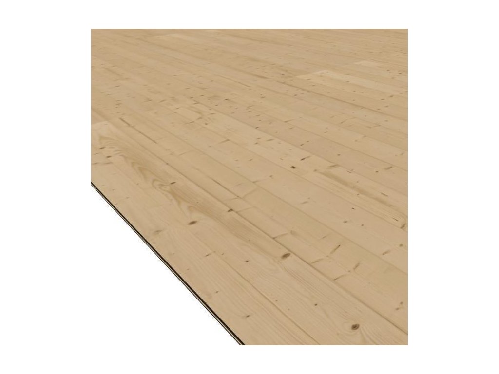 Dřevěná podlaha pro domky KARIBU vyrobená ze smrkových profilů síly 16 mm, systém pero / drážka.