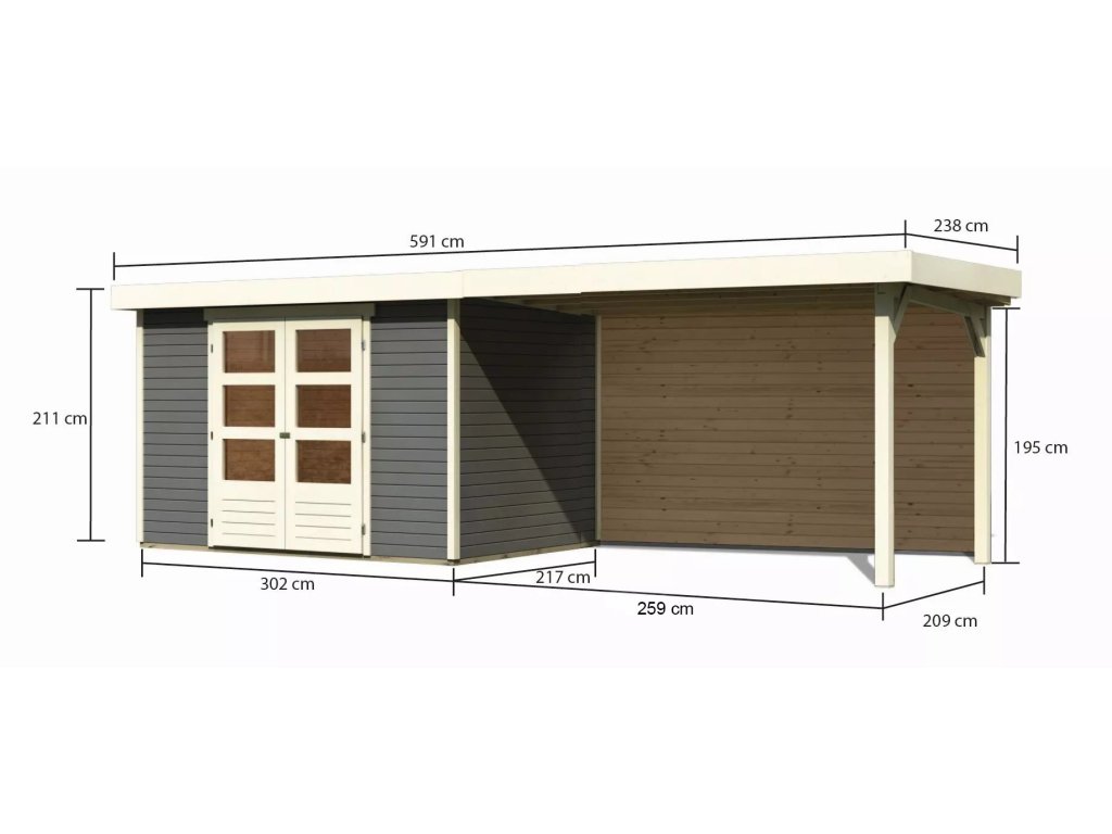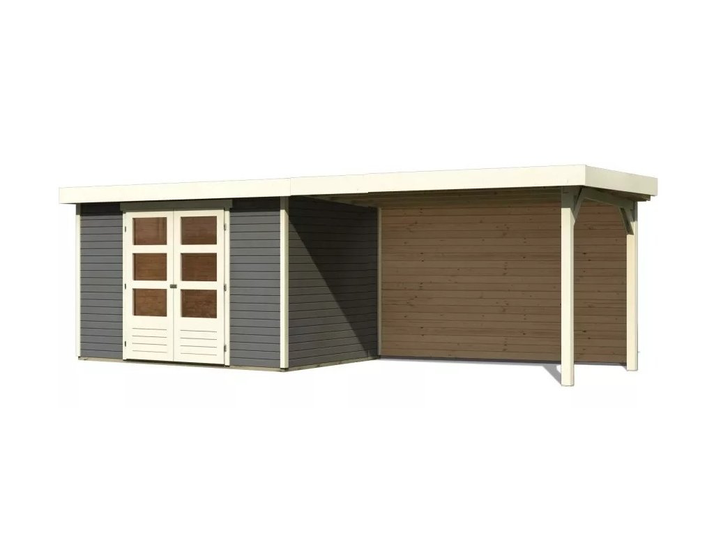 dřevěný domek KARIBU ASKOLA 4 + přístavek 280 cm včetně zadní stěny (9181) terragrau LG3268