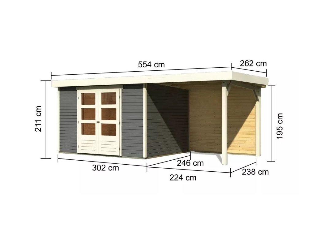 dřevěný domek KARIBU ASKOLA 5 + přístavek 240 cm včetně zadní stěny (9156) terragrau LG3276