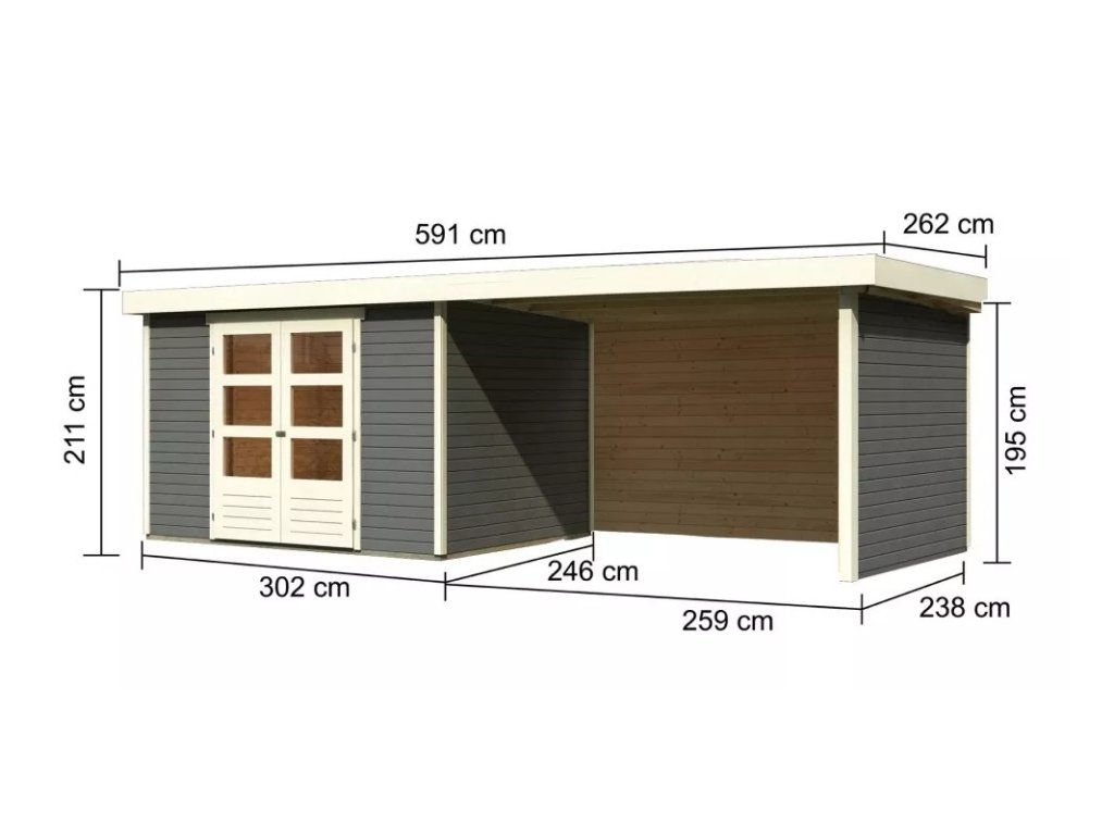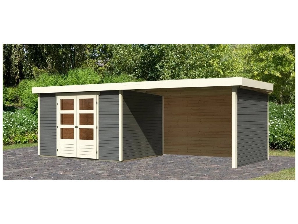 dřevěný domek KARIBU ASKOLA 5 + přístavek 280 cm včetně zadní a boční stěny (9162) terragrau LG3283
