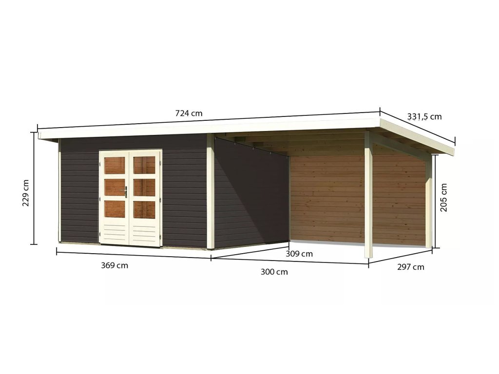 dřevěný domek KARIBU NORTHEIM 4 + přístavek 330 cm včetně zadní stěny (9274) terragrau LG3861
