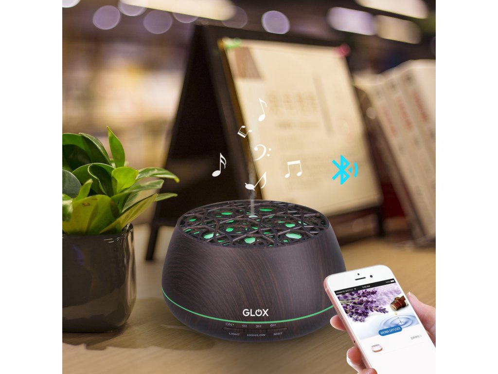 Aroma difuzér a zvlhčovač je vybaven integrovaným reproduktorem.Díky Bluetooth konektivitě lze zařízení snadno propojit s dalšími zařízeními.