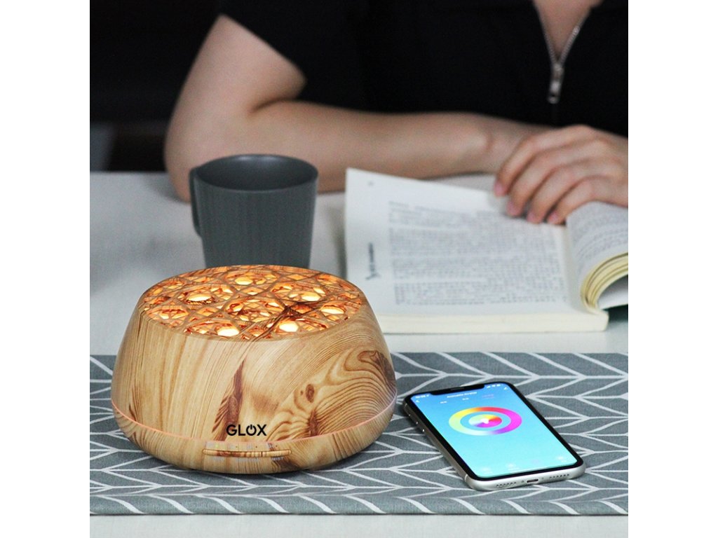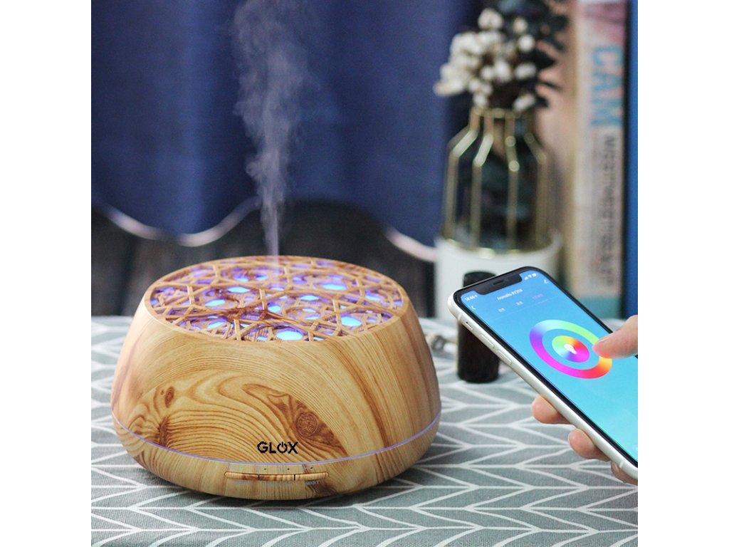 Aroma difuzér a zvlhčovač je vybaven integrovaným reproduktorem.Díky Bluetooth konektivitě lze zařízení snadno propojit s dalšími zařízeními.