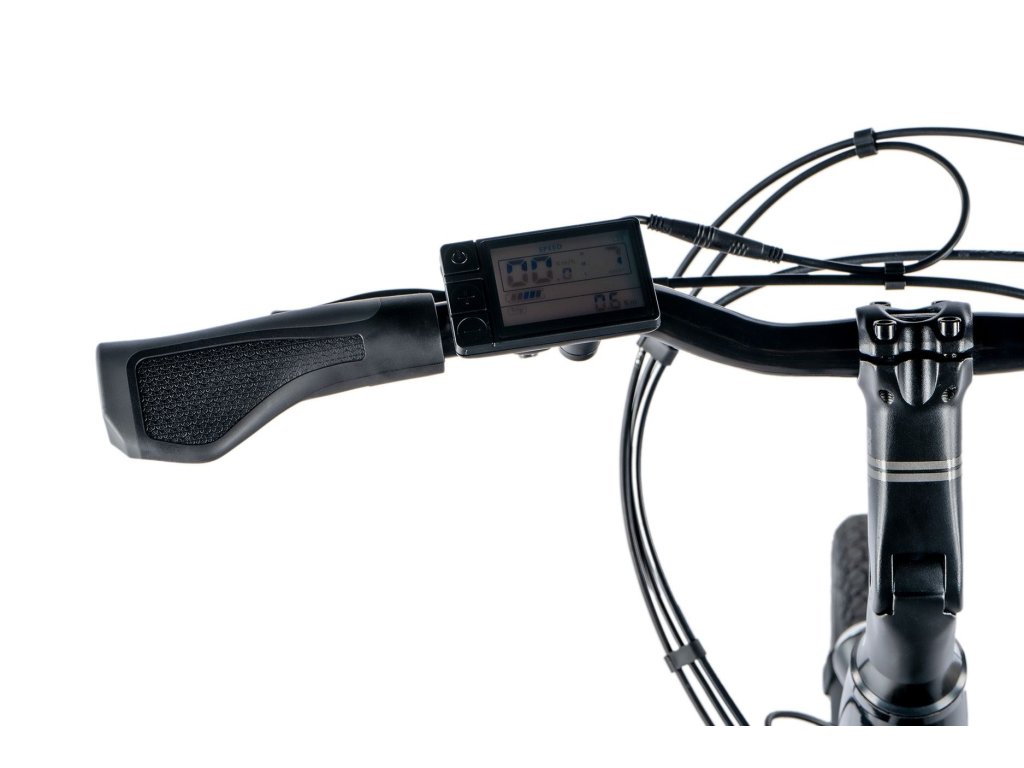 Kolo ovládáte tlačítkovým ovladačem na řídítkách. Přehledný LCD displej vás informuje o ujetých kilometrech, aktuální, průměrné a maximální rychlosti a stavu baterie. Navíc je podsvícený, proto vidíte veškeré informace i v noci.