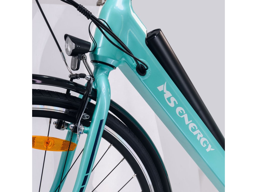 Dámské elektrické kolo MS ENERGY eBike c10 představuje nejrychlejší a nejlevnější dopravní prostředek pro cestování po městě, který vás doveze do požadovaného cíle a zase zpět i bez nepříjemného lapání po dechu. Je dodáváno se 17″ rámem (velikost M) a je mimořádně vhodné pro cyklistky, které hledají nejlepší poměr cena/dojezd. Každá část elektrokola je vyrobena z pečlivě vybraných materiálů, jako je hliníková slitina 6061 či nerezová ocel, které poskytují vysokou spolehlivost a zároveň prodlužují celkovou životnost bicyklu.