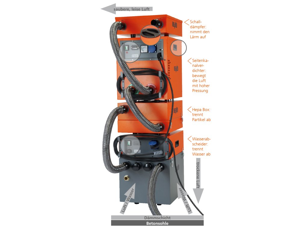 - HEPA filtrační skříň pro dmychadla s bočním kanálem pro odvlhčování izolační vrstvy