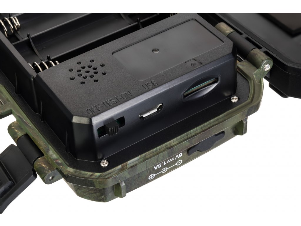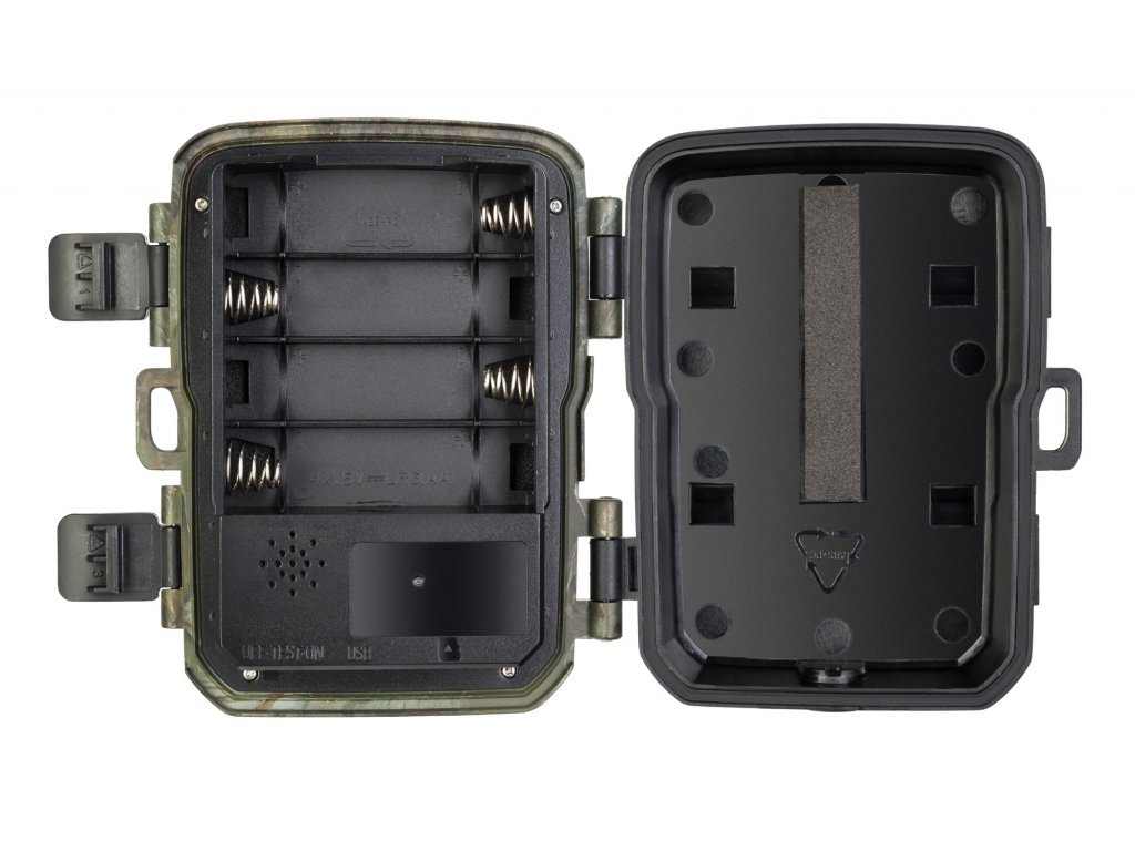 Fotopast můžete umístit venku v jakémkoli ročním období – je prachotěsná, chráněná před silnými proudy vody; odolává horkému i chladnému počasí. Fotopast se dodává se stativem a sadou montážních držáků pro upevnění zařízení na strom nebo na zeď. Fotopast je napájena 4 bateriemi AA (nejsou součástí dodávky) nebo externím zdrojem energie.
