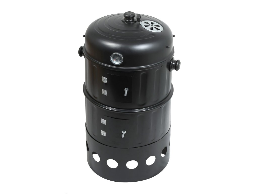 - Výbava: poklop, teploměr, regulace teploty, vyjímatelný rošt, udírna