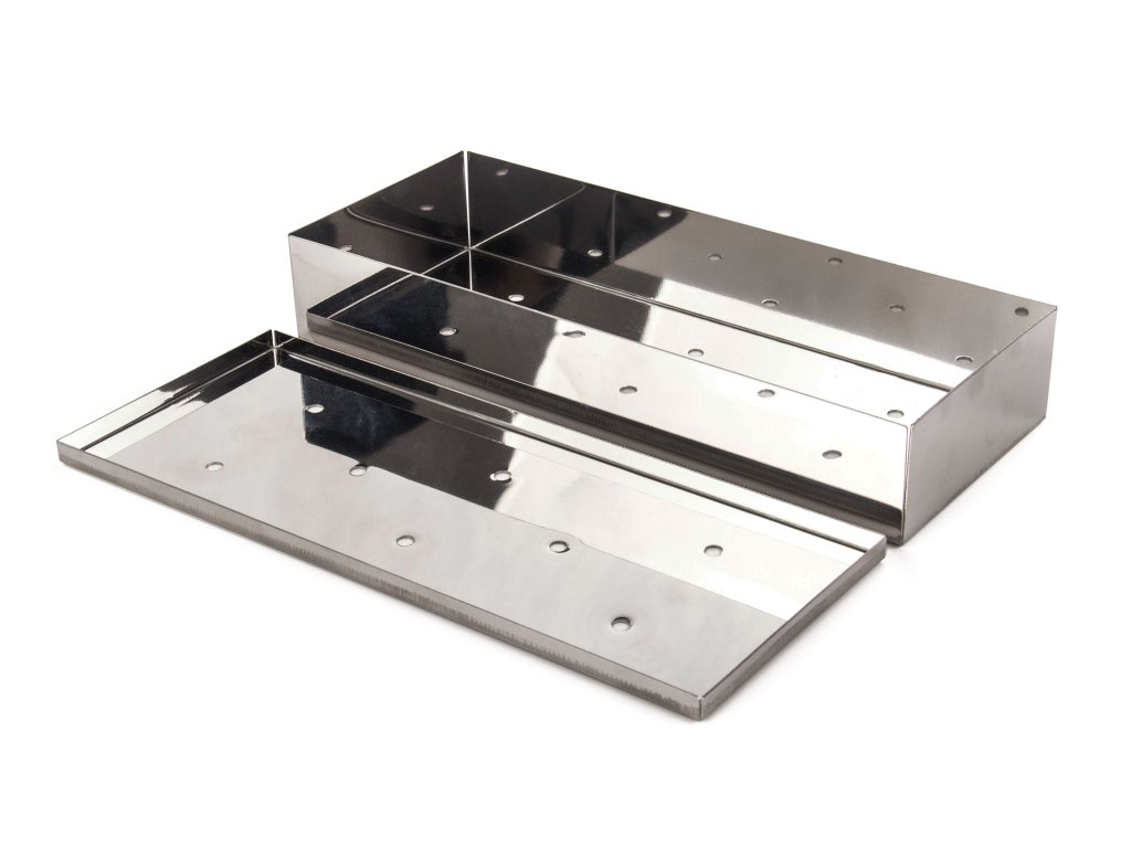 G21 box na uzení s víkem je pevný a stabilní i při vysoké teplotě uvnitř grilu. Vyrobili jsme jej z nerezu a opatřili otvory ve spodní stěně i ve víku. Díky těmto průduchům se kouř uvolňuje ven z boxu a plní vnitřní prostor grilu.