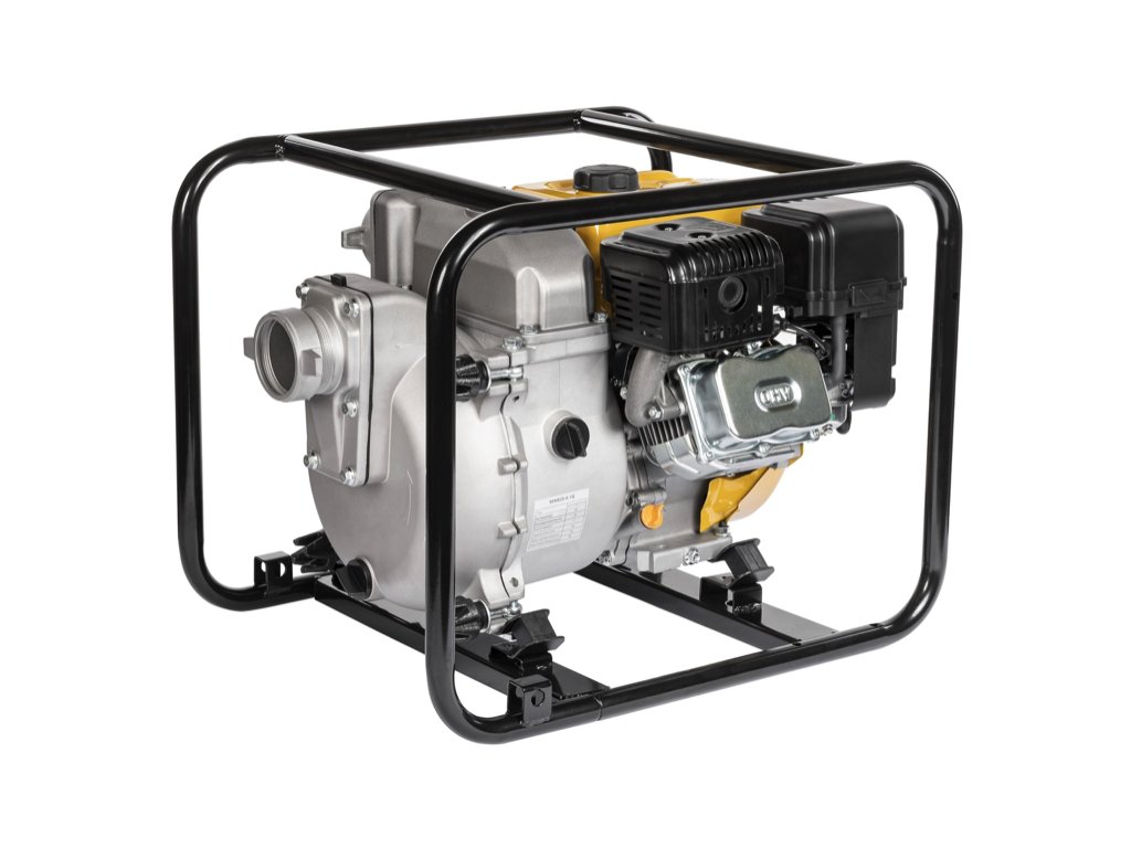 - Díky robustní konstrukci, litinovému oběžnému kolu, gumovým tlumičům vibrací a sací výšce až 7 metrů je vhodné pro náročné podmínky. Sestava zahrnuje 2 koncovky pro hadice, automatické vypnutí při nízké hladině oleje a zabudovaný vypínač motoru.
