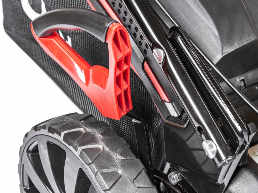 - Pohodlné ovládání: Samohybný pohon a ergonomická rukojeť činí sečení trávníku snadným a příjemným.