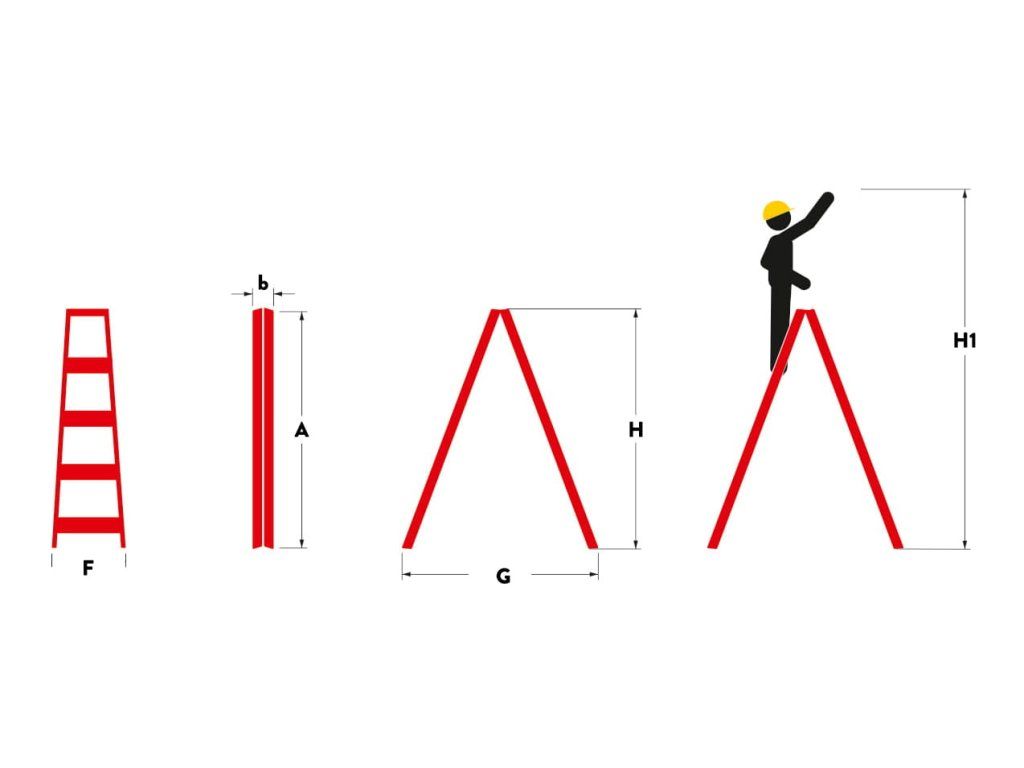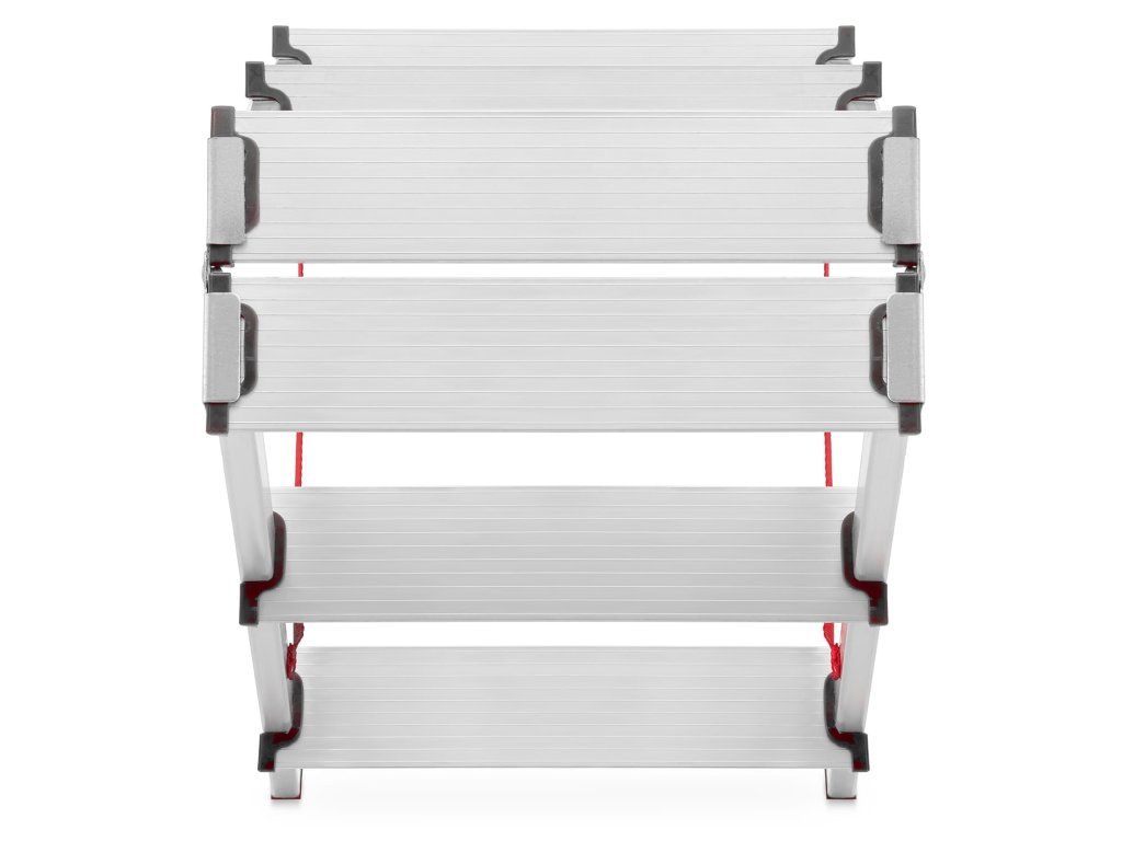 - protiskluzová drážkovaná horní plošina, která je tvořena dvěma vedle sebe umístěnými kroky. Police je vhodným místem pro odložení nástrojů, čisticích prostředků nebo kbelíků
