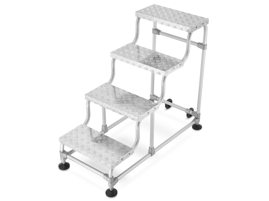 Profesionální hliníkové přenosné schody, které mohou provádět mnoho funkcí. Perfektní jako lehké přenosné úložné schodiště pro bezpečný provoz. Mohou také sloužit jako schody na staveništích, průmyslových zařízeních. Schody jsou skvělým nástrojem pro přístup k návěsům, kontejnerům nebo jiným konstrukcím vyžadujícím řešení pro práci ve výškách. Díky velmi silné konstrukci jsou schody velmi stabilní a bezpečné. Schody dodáváme v odšroubovaném stavu pro vlastní montáž (samostatné schůdky, stabilizátor, boky a výztuhy), díky malým rozměrům po odšroubování schodů lze snadno přepravovat a skladovat. Díky použití dvousložkových protiskluzových nožiček s protiskluzovou vrstvou pravé gumy máme 100% jistotu, že schody budou stát bezpečně a stabilně na určeném místě. Kromě toho jsou modely 3, 4 a 5 kroků navíc vybaveny příčným stabilizátorem, který výrazně zvyšuje úroveň stability a bezpečnosti při práci ve výšce. Stabilizátor je navržen tak, aby dále posílil stabilitu a eliminoval možnost bočního převrácení. Hliníkové schody jsou vybaveny velmi bezpečnými schůdky z děrovaného hliníkového plechu s protiskluzovými vlastnostmi.