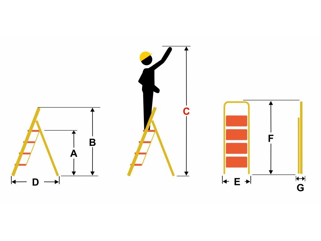 - Pracovní výška schůdků: 245 cm (C)