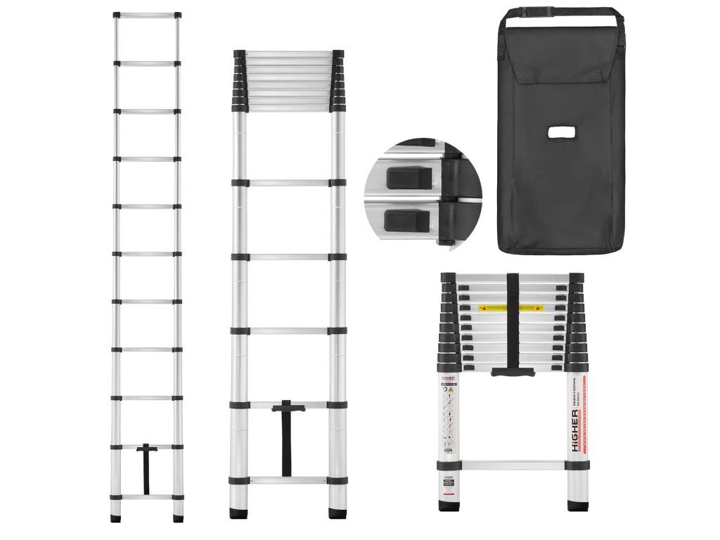 Hledáte do své domácnosti kompaktní, lehký a přitom univerzální nástroj pro práce ve výškách? Teleskopický žebřík HIGHER je jasnou volbou. Díky své moderní konstrukci, která se skládá z hliníkových trubek různých průměrů, můžete tento žebřík snadno složit do neuvěřitelně malé velikosti. Jeho elegantní černé pouzdro navíc usnadňuje jak přepravu, tak i skladování. A nejlepší na tom všem? Nejste omezeni vlastnictvím dílny, celého sklepa nebo garáže. Tento žebřík nevyžaduje speciální rukojeti pro přepravu. Můžete ho jednoduše zasunout pod postel, uložit do skříně nebo ho nechat v kufru auta. A jakmile ho budete potřebovat, stačí ho vytáhnout z pouzdra a přenést na místo určení. Práce ve výškách tak bude hračkou! Zní to dobře, že?