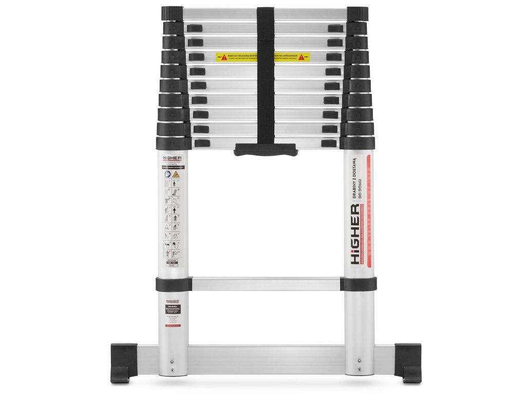 Hledáte do své domácnosti kompaktní, lehký a přitom univerzální nástroj pro práce ve výškách? Teleskopický žebřík HIGHER je jasnou volbou. Díky své moderní konstrukci, která se skládá z hliníkových trubek různých průměrů, můžete tento žebřík snadno složit do neuvěřitelně malé velikosti. Jeho elegantní černé pouzdro navíc usnadňuje jak přepravu, tak i skladování. A nejlepší na tom všem? Nejste omezeni vlastnictvím dílny, celého sklepa nebo garáže. Tento žebřík nevyžaduje speciální rukojeti pro přepravu. Můžete ho jednoduše zasunout pod postel, uložit do skříně nebo ho nechat v kufru auta. A jakmile ho budete potřebovat, stačí ho vytáhnout z pouzdra a přenést na místo určení. Práce ve výškách tak bude hračkou! Zní to dobře, že?