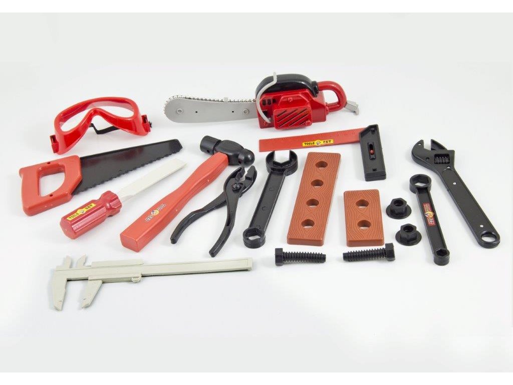 Dětské nářadí G21 v setu představuje sadu dětského nářadí, která je ideální jako dárek pro každého malého kutila. Obsahuje 18 ks nářadí, od ochranných brýlí, motorové pily, respirátoru, až po matky a šrouby. Děti se s ním krásně zabaví, odreagují a hlavně se naučí správně držet nářadí.Specifikace: