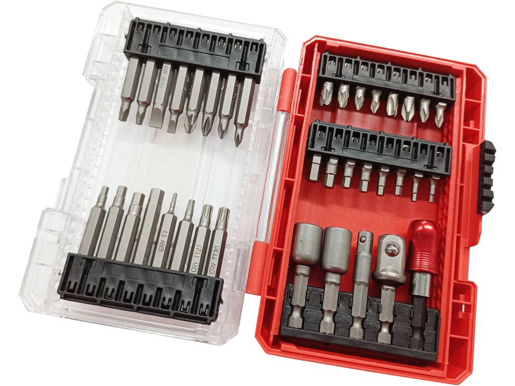| doplňující parametr: | hroty 25mm: PH 0-1-2-3, PZ 0-1-2-3, HEX 2-2,5-3-3,5-4-5-5,5-6mm, hroty 50mm: (-) 4-6,5mm, PH 0-1-2, PZ2, HEX 3-4-5-6mm T 7-15, TTa 27-30, SQ 1-2, nástrčné hlavice 48mm: 8-10mm, adaptéry 50mm: 1/4"čtyřhran-1/4"hex, 1/2"čtyřhran-1/4"hex, magnetický držák 1/4" hrotů Fix-Clip 60mm, |