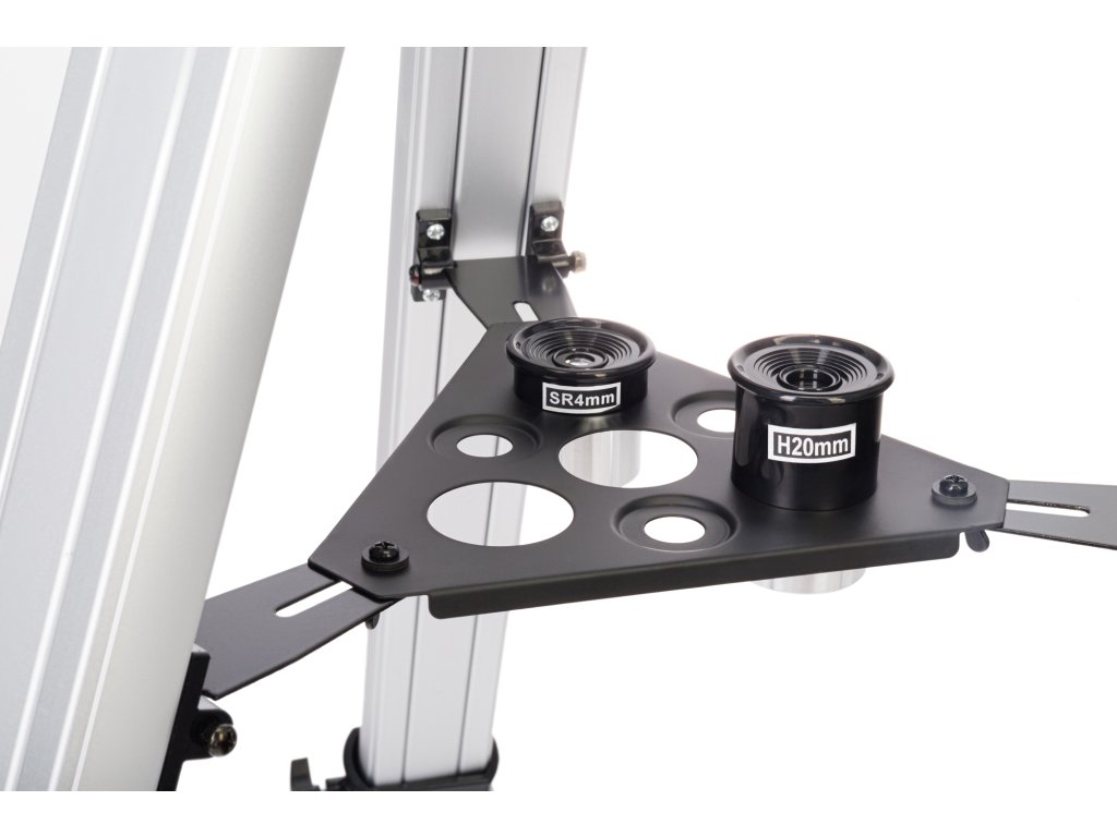 Montáž je instalována na robustním kovovém stativu s nastavitelnými nohami. Přihrádka na příslušenství je uprostřed stativu. Součástí sady jsou okuláry s různými ohniskovými vzdálenostmi a Barlowova čočka, která poskytuje mnoho možností pozorování při různých zvětšeních. V případě potřeby můžete hvězdářský dalekohled doplnit dalším příslušenstvím: oblíbený průměr okuláru 1,25" umožňuje instalaci dalšího doplňkového příslušenství.