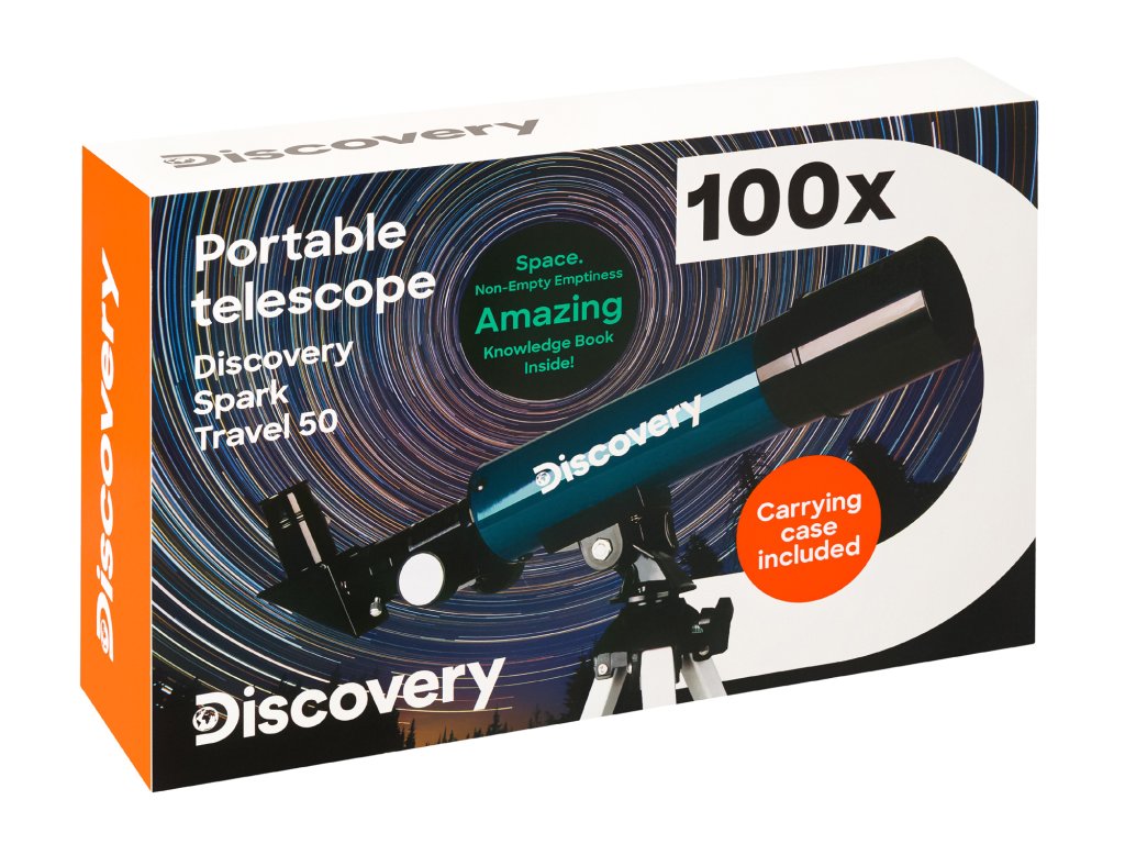 Hvězdářský dalekohled Levenhuk Discovery Spark Travel 50 se vzdělávací publikací je vším, o čem může začínající astronom snít. Kompaktní a lehký přístroj se dodává s praktickým kufříkem na přenášení, stolním stativem a dalším nezbytným příslušenstvím, včetně vzdělávací publikace „Vesmír. Neprázdná prázdnota“. Díky této barevné zábavné encyklopedii získáte praktické poznatky o vesmírných objektech, které jsou viditelné při pozorování tímto hvězdářským dalekohledem. Kniha má měkkou vazbu, takže si ji můžete snadno vzít s sebou na astronomický festival nebo při výletu mimo město spolu se samotným hvězdářským dalekohledem a jeho příslušenstvím.