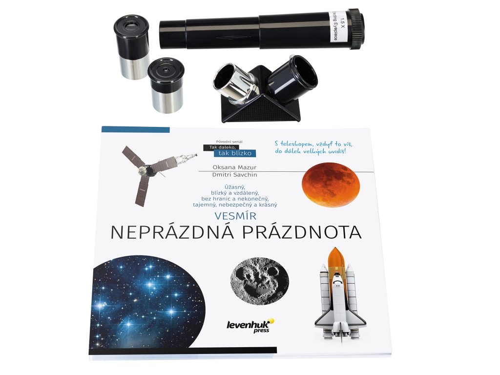 - Velká sada užitečného příslušenství a informativní kniha o vesmíru
