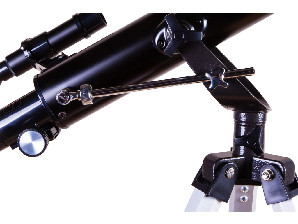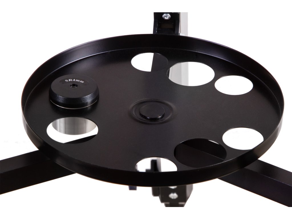 V sadě je také dodáván hliníkový stativ. Obsahuje nožičky s nastavitelnou výškou umožňující instalovat teleskop i na drsném povrchu. V sadě je také zásobník pro odkládání předmětů.