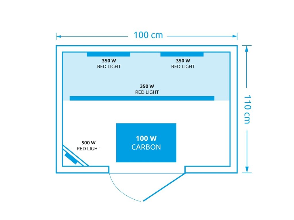 - Rozměry infrasauny (š x v x h): 100 x 190 x 110 cm