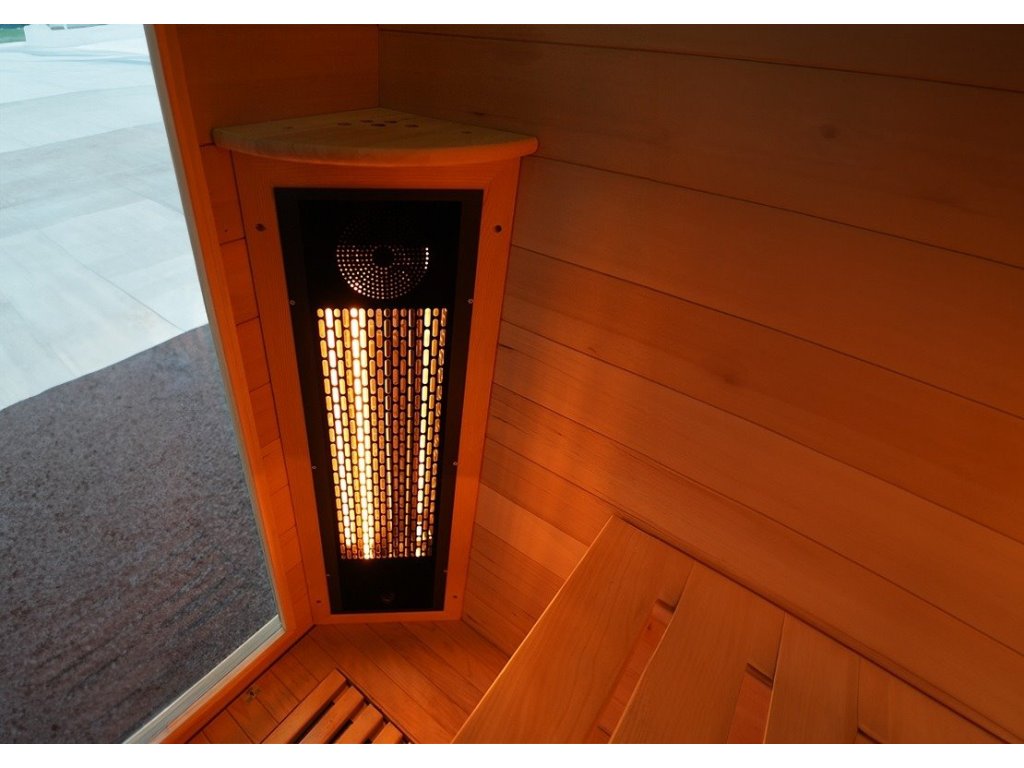 Infrasauna je vybavená 1 karbonovým topidlem a 4 Red light/Magnesium topidly. Na řídícím panelu snadno navolíte jakoukoliv možnou požadovanou teplotu. Pro dosažení všech výhod infrasauny si nastavte teplo na maximum. Při tomto nastavení se teplota pohybuje v rozmezí od 45 do 60 °C. Účinnost saunování závisí na teplotě vzduchu a na intenzitě infračerveného záření. Jakmile teplota vzduchu dosáhne zvoleného stupně, zářiče se vypnou.