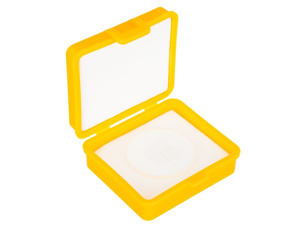 Na sklíčku je vyleptaná optická mřížka 10x10 mm. Uprostřed sklíčka je nitkový kříž – dvě mikrometrické stupnice o 200 dílcích. Dělení stupnice je 0,05 mm a délka každé stupnice je 10 mm.