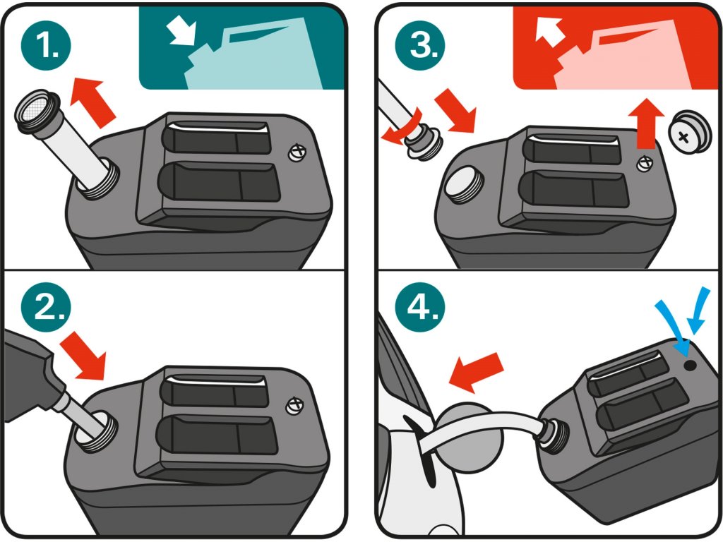 - odvzdušňovací šroub, který je nutno při vylévání tekutin z kanystru vyšroubovat (pro manipulaci s + profilem šroubu lze použít uzávěr kanystru, ve kterém je vylisována matrice s + profilem)