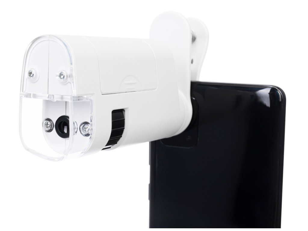 - Kapesní mikroskop s klipem pro připojení k mobilnímu zařízení