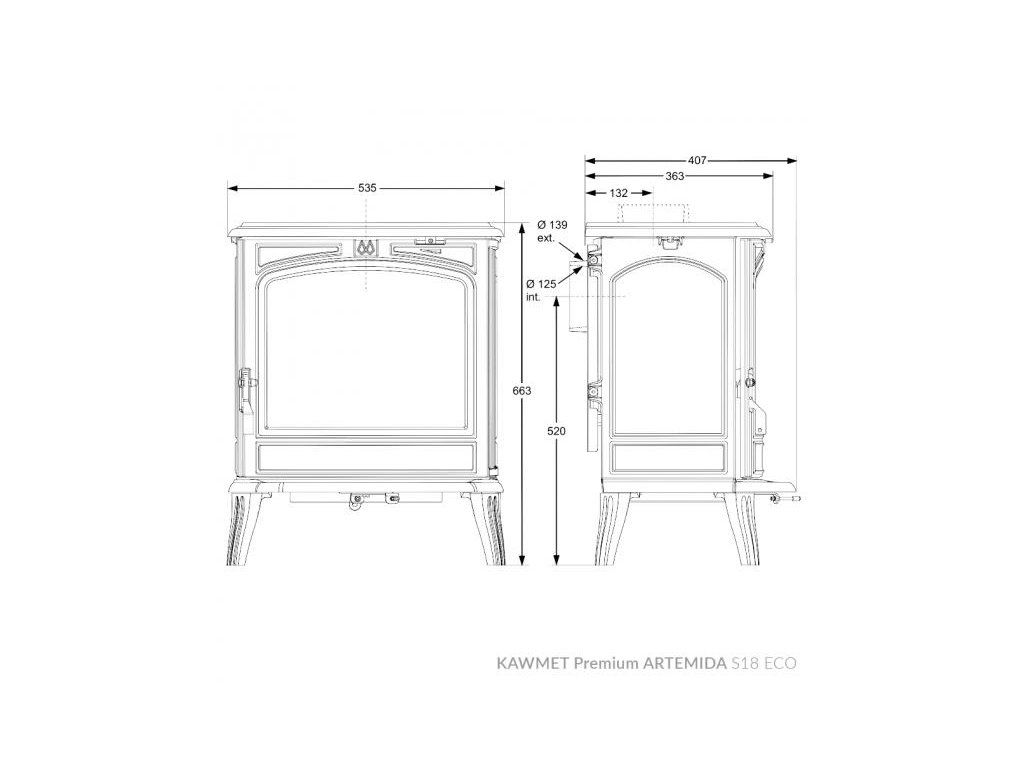 KAWMET krbová kamna Premium ARTEMIDA S18 ECO jsou litinová kamna na dřevo z řady PREMIUM. Tato řada krbových kamen KAWMET má velkou řadu výhod, z nichž hlavní jsou splnění požadavků na ekodesign,krásný design a vysoký výkon.