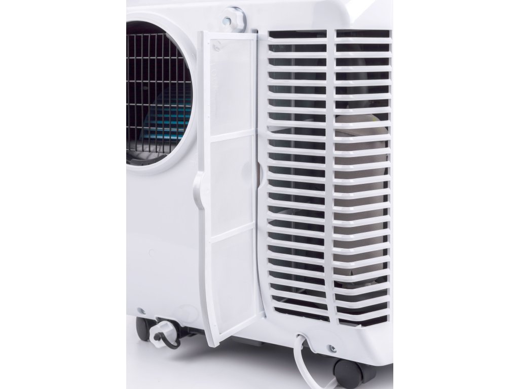Klimatizaci můžete díky integrovaným kolečkům kdykoliv přemístit z místa na místo a chladit, vytápět nebo odvlhčovat vzduch v té místnosti, ve které se zrovna nacházíte. Zakupte si ke klimatizaci těsnění do okna G21 (skladové číslo 775374) a zajistěte si tak ideální podmínky chlazení bez nežádoucího tepla zvenčí.