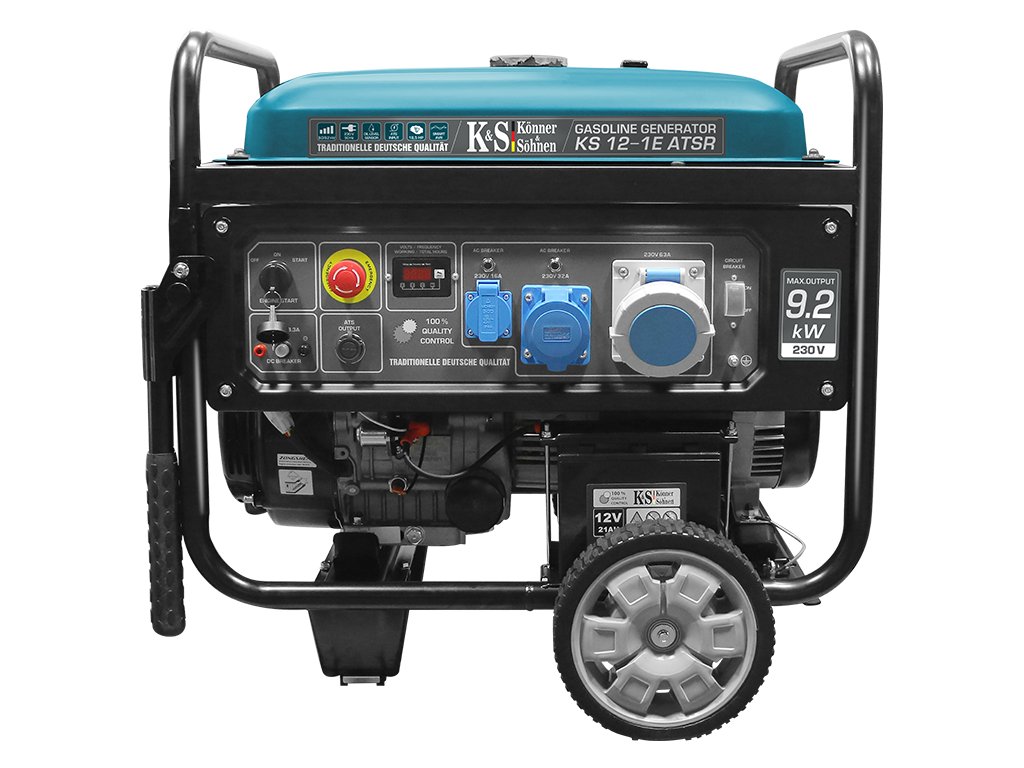Benzínová elektrocentrála KS 12-1E ATSR dosahuje maximálního výkonu s jedním válcem. Elektrocentrála je vybavena uživatelsky přívětivým ergonomickým ovládacím panelem s tlačítkem nouzového zastavení a multifunkčním LED displejem, který umožňuje sledovat provoz elektrocentrály. Velkokapacitní palivová nádrž o objemu 55 l zajišťuje dlouhý a nepřetržitý provoz.