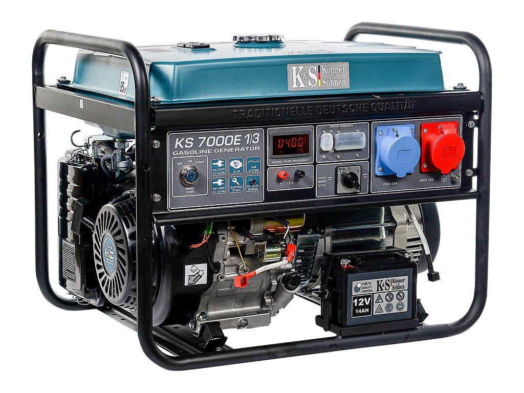 Benzínová elektrocentrála KS 7000E 1/3 je vybavena unikátním inovativním systémem fázového spínání VTS (přepínač napětí), který umožňuje použít elektrocentrály jak ve třífázovém režimu (400 V), tak v jednofázovém režimu (230 V) bez ztráty energie! Mimo jiné je vybavena moderním LED displejem, který zobrazuje počet odpracovaných hodin, frekvenci a výstupní napětí. Elektrocentrála dosahuje max. výkonu 5,5 kW a má objem palivové nádrže 25 l.