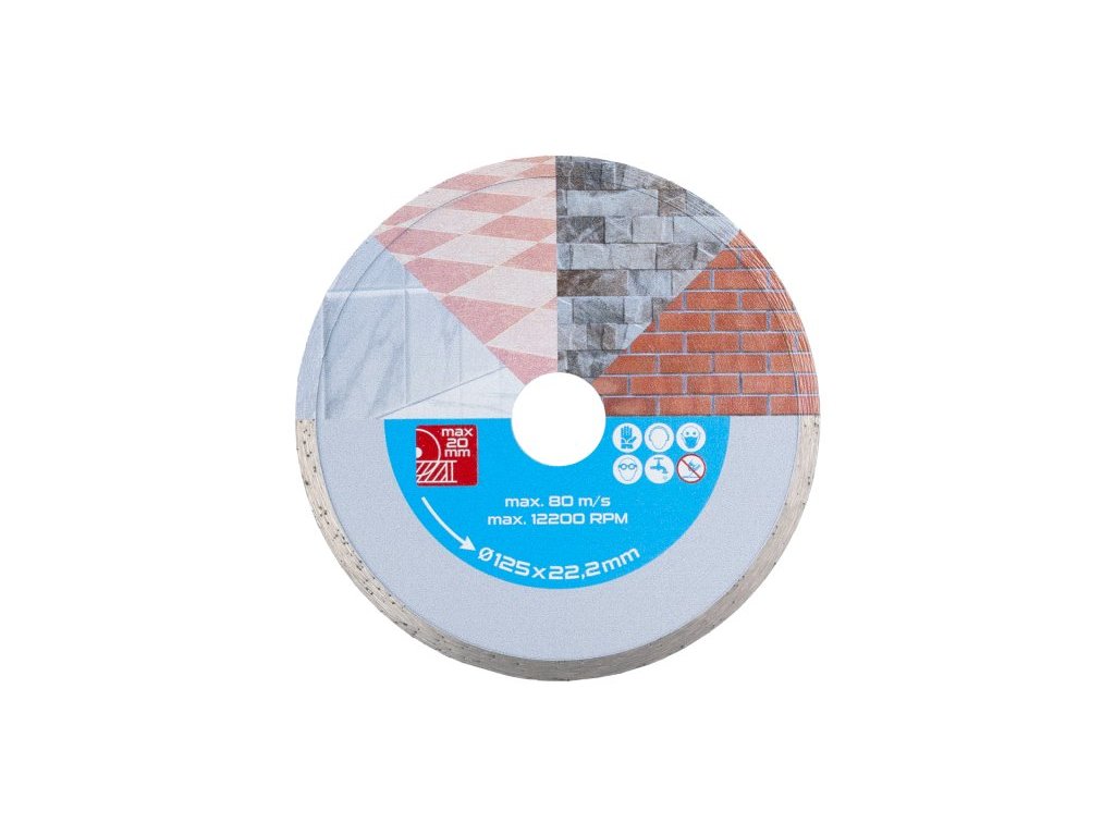 - Diamantový kotouč DIAMANT, provedení : PLNÝ - celoobvodový, kvalitní diamantová vrstva s vysokým obsahem diamantového prachu, přesné zpracování - napojení na nosný disk kotouče odolávající vysokým teplotám, použití : určený pro mokré i suché řezání dlažby a obkladů, betonu, cihel, zdiva, žuly, mramoru, kamene, skla, keramiky, balení : blistr s eurootvorem, přiložen redukční kroužek z 22,2 na 20 mm, rozměry : uvedeny v názvu výrobku.