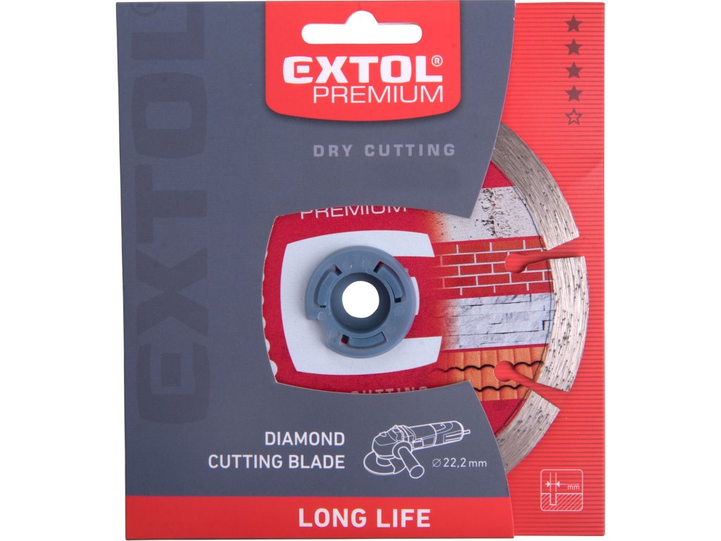 Řada diamantových řezných kotoučů LONG LIFE s prodlouženou životností pro profesionální a poloprofesionální použití.Díky složení diamantové směsi a výšce segmentu mají kotouče až o 50% větší řezný výkon než ostatní Extol Premium kotouče.