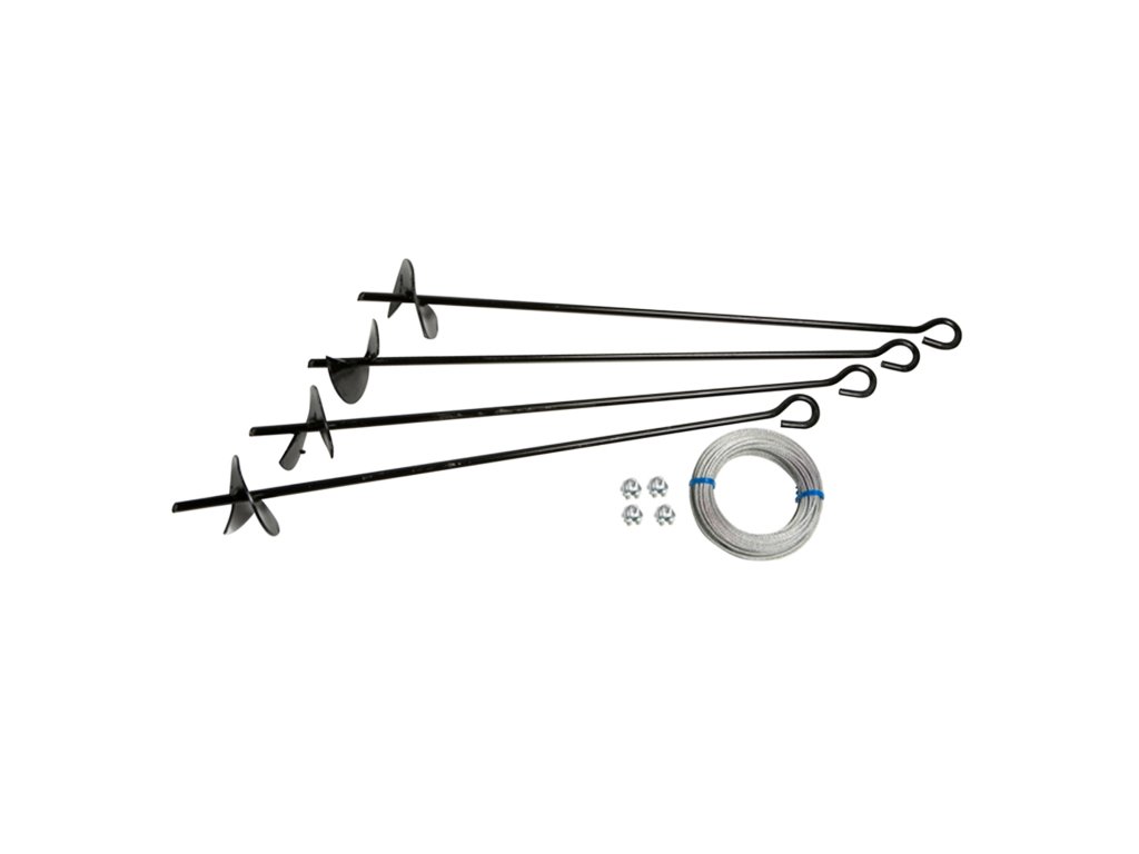 Kotvící sada do země ARROW. Jde o sadu 4 kotev do země, lana a úchyty, pomocí kterých jednoduše a správně připevníte domeček k zemi.