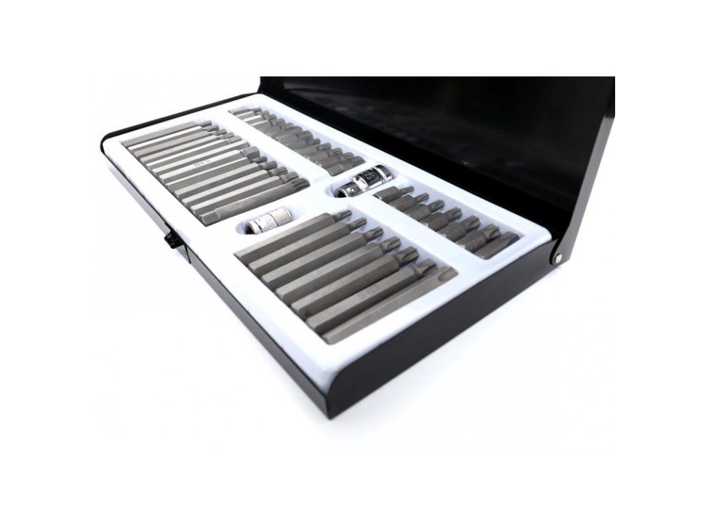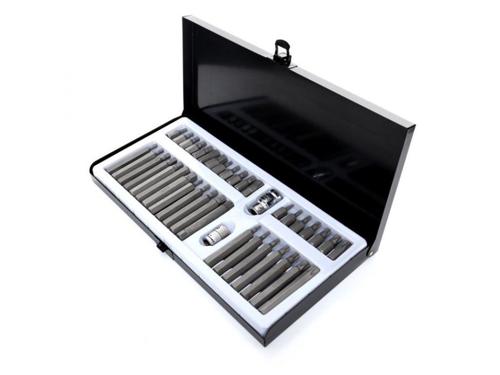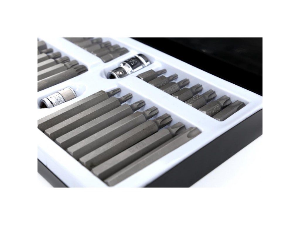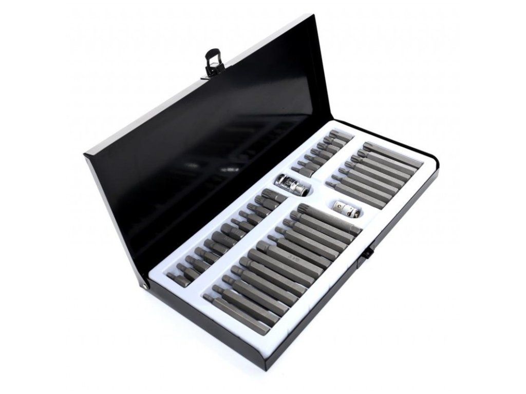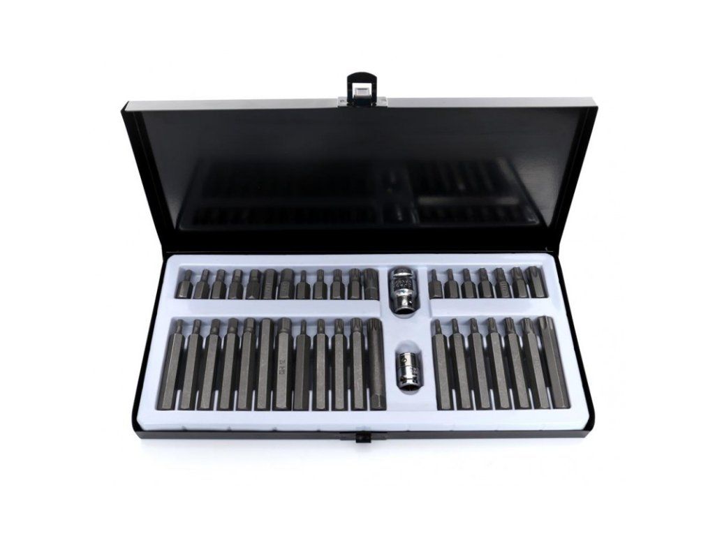 Komplet sada speciálních nástavců a bitů HEX, TORX, SPLINE 40 dílů Kraft&Dele je vysoce kvalitní sada nástrojů, která obsahuje širokou škálu bitů pro různé typy šroubů. Tento set je ideální pro profesionální použití v dílnách, garážích a pro domácí kutily. Bity jsou vyrobeny z vysoce odolné oceli, která zaručuje dlouhou životnost a vysokou efektivitu práce.