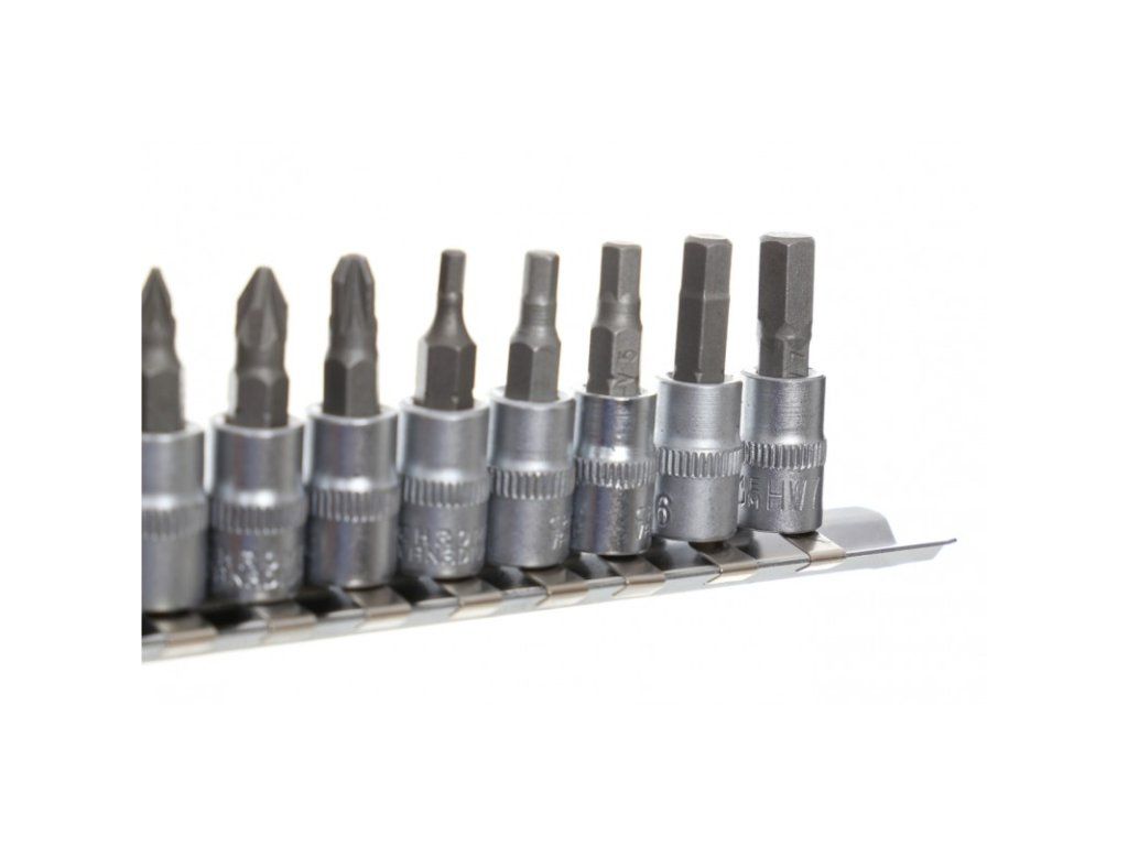 Kraft&Dele KD10240 sada bitů 1/4" 11 ks obsahuje 11 různých bitů, které jsou ideální pro širokou škálu aplikací. Tyto vysoce kvalitní bity jsou vyrobeny z tvrzené oceli, což zajišťuje jejich dlouhou životnost a odolnost vůči opotřebení. Sada obsahuje různé velikosti bitů pro šrouby imbus, Torx a další, což ji činí skvělým doplňkem pro každou dílnu nebo domácnost.