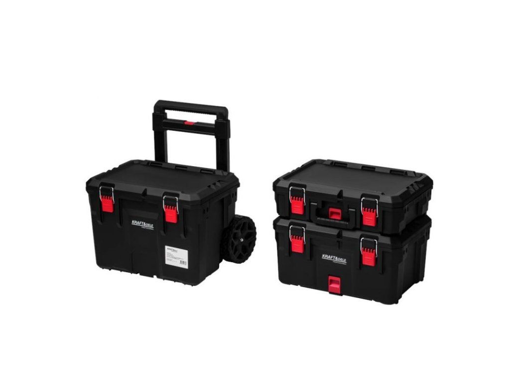 Praktický a mobilní vozík na nářadí KD1077 se třemi prostornými boxy je ideální pro přehledné uložení a snadný transport nářadí, příslušenství a spojovacího materiálu. Modulární systém umožňuje používat boxy společně jako jednu sestavu nebo samostatně. Odolná konstrukce s kovovými prvky, zesílené uzávěry, transportní kolečka a teleskopická rukojeť zajišťují spolehlivost a pohodlnou manipulaci i při plném zatížení.