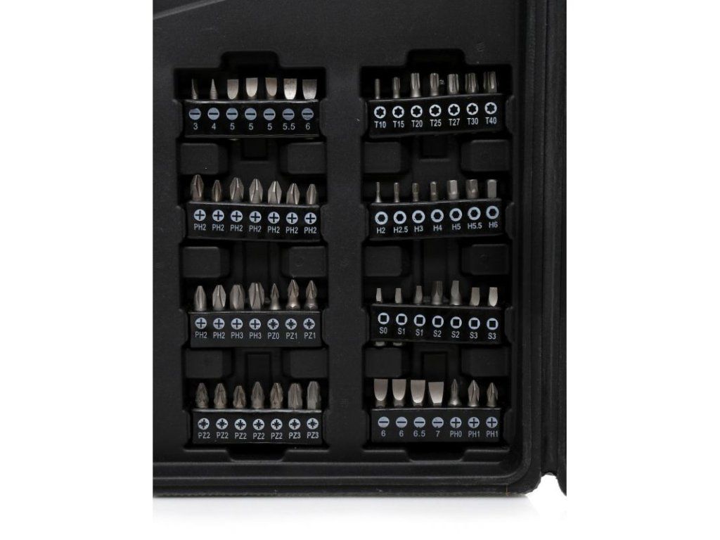 - Bity: 11 plochých, 14 křížových, 7 TORX, 7 šestihranných, 7 čtvercových, 10 hvězdicových