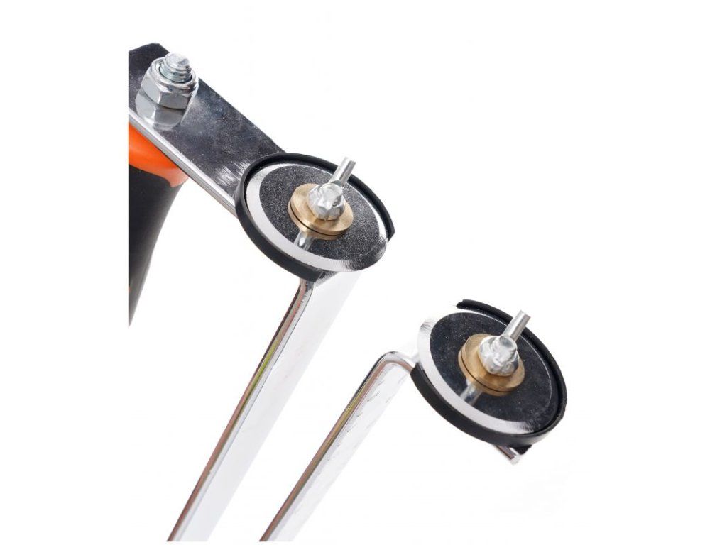 Řezačka na sádrokarton KD11239 od značky Kraft&Dele je praktický a efektivní nástroj určený pro precizní a rychlé řezání sádrokartonových desek. Díky dvojici řezacích kotoučů umožňuje současné řezání materiálu z obou stran, což zaručuje vysokou přesnost a hladký řez. Ergonomická rukojeť poskytuje pevný úchop a zajišťuje pohodlnou manipulaci s přístrojem.