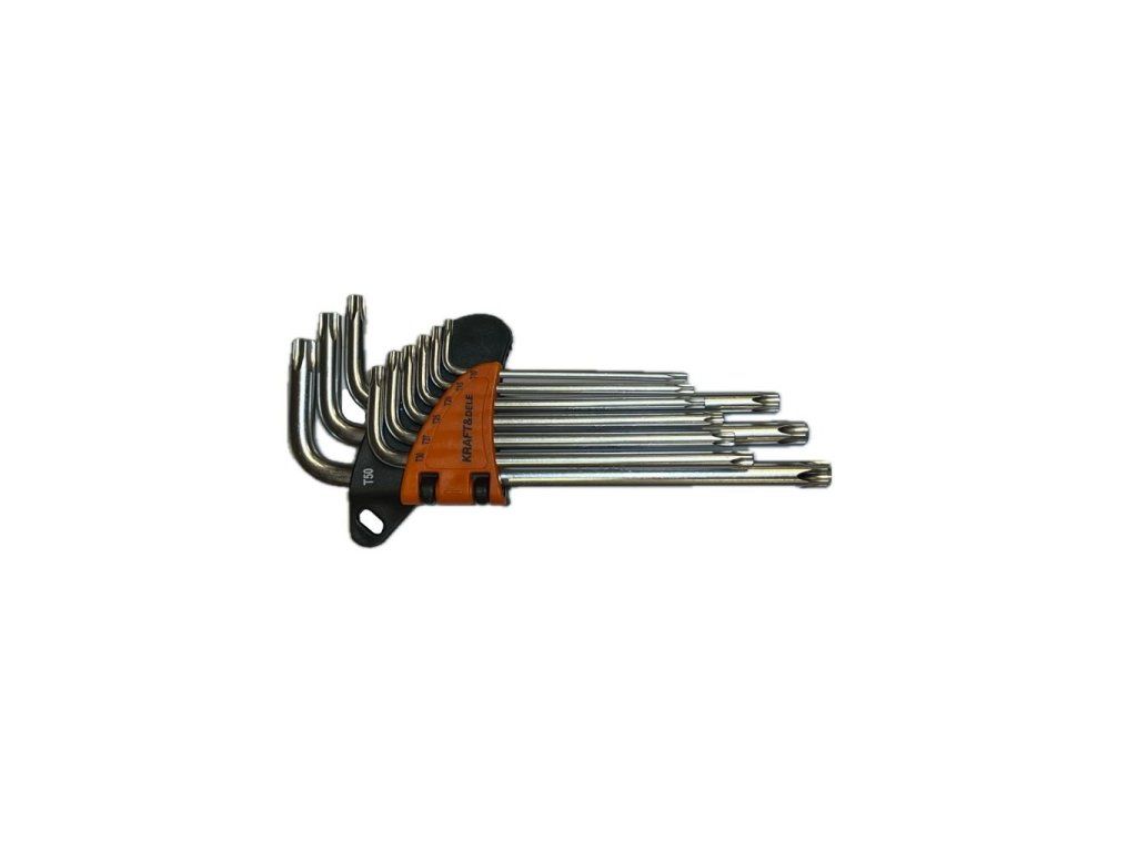 Sada barevných imbusových modelů Kraft & Dele KD11932 mají speciální hrot s otvorem uzpůsobený pro práci se šrouby TORX.