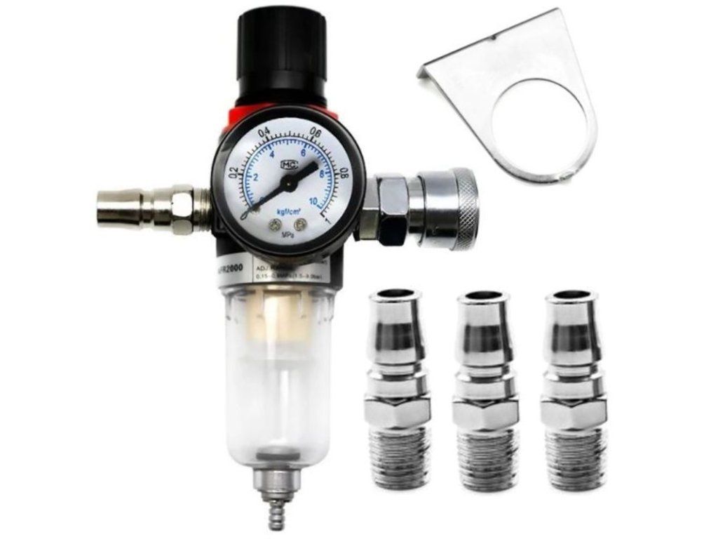Profesionální redukční ventil s odvaděčem kondenzátu od společnosti Kraft&Dele snižuje a udržuje konstantní pracovní tlak nezbytný pro správnou funkci pneumatických zařízení jako jsou stříkací pistole, nafukovací pistole nebo rázové utahováky.