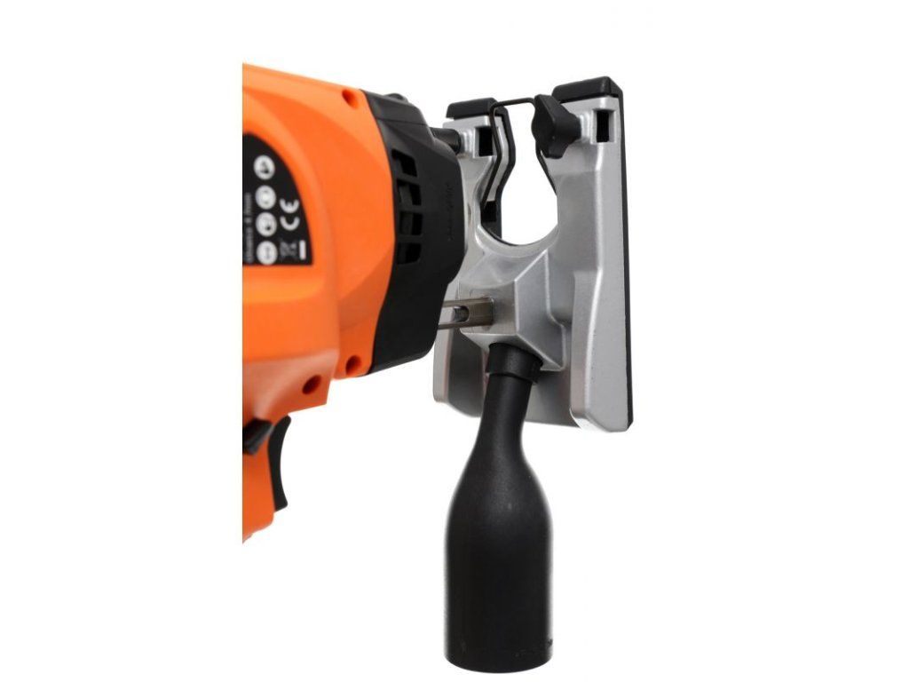 - Disponuje teleskopickou opěrkou s přesným nastavením hloubky práce.