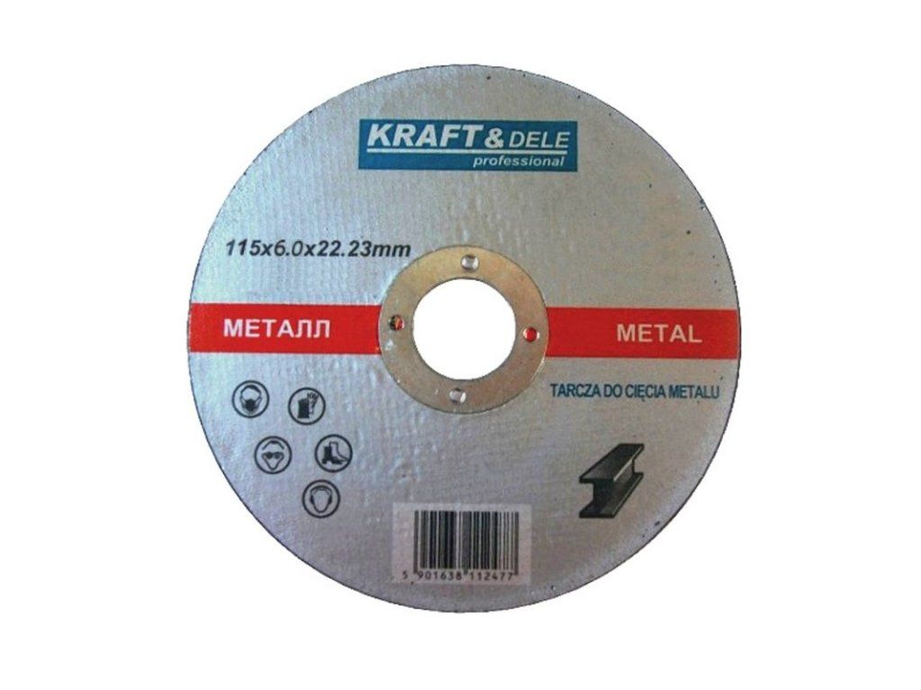 Kovový řezný kotouč Kraft & Dele má brusivo pojené syntetickou pryskyřicí a vyztužené tkaninou ze skelných vláken